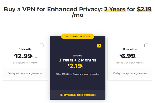 🎁 Long-term subscriptions offer huge savings and often come with a 45-day money-back guarantee.